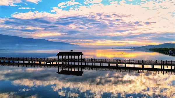 冬天的石屏異龍湖,不僅有從西伯利亞遠渡重洋而來的紅嘴鷗,還有“半江瑟瑟半江紅”的詩畫風光。
