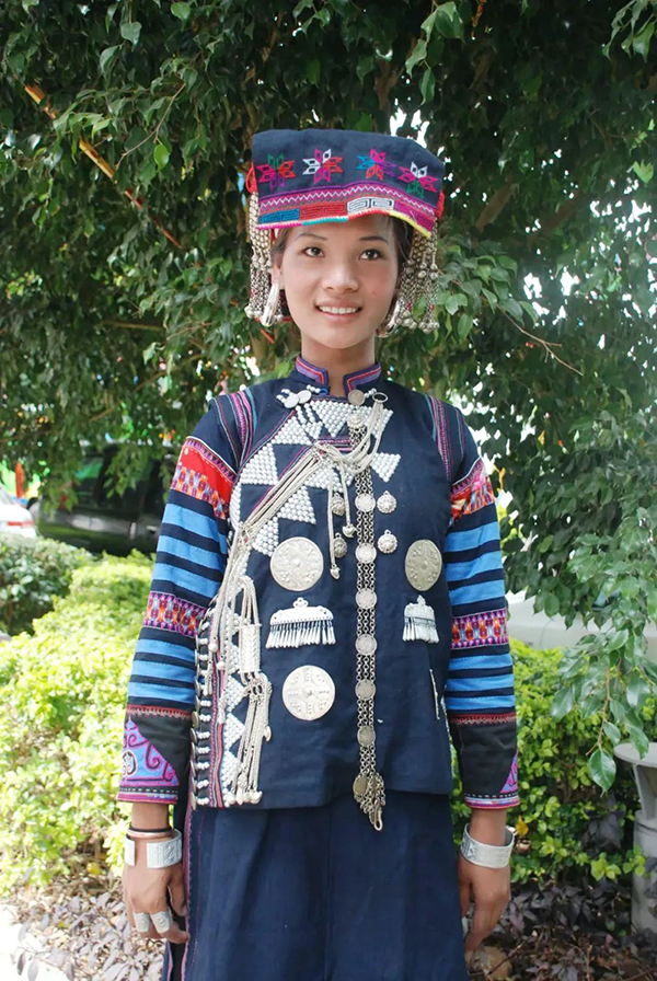 哈尼族服飾歷史悠久、色彩斑斕、美觀大方。自古以來,哈尼族服飾主要以自制黑色或青色土染布為主,經(jīng)種植棉花、收棉、刺繡等二十多道繁雜工序而成。