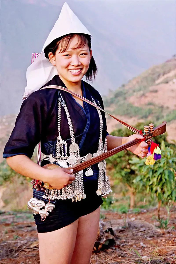 紅河縣哈尼族奕車支系獨(dú)有的“奕車服飾”至今已有千余年的歷史?!稗溶嚪棥碧攸c(diǎn)是緊臀、超短、露臍、無褲腰。以黑白相配為主調(diào),對(duì)比強(qiáng)烈、白色的帽子、銀飾,黑色的衣服、褲子,一眼望去極為醒目,充分體現(xiàn)了哈尼族奕車人簡潔、熱情奔放的民族個(gè)性特征。