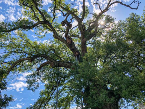 坐于樹下,頭頂枝繁葉茂