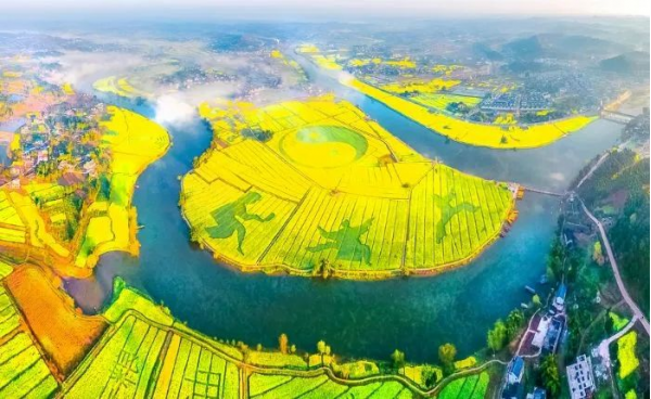 陳摶故里景區(qū)集賞花踏青、田園觀光、農(nóng)科研學(xué)、康養(yǎng)休閑于一體。除賞花外,游客登上景區(qū)里的陳摶山,可以遠(yuǎn)眺依靠植物打造的巨幅太極八卦圖、太極拳、仙鶴圖等大地藝術(shù)圖案。