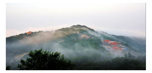 清源山絕頂稱為中峰,與東峰、左峰鼎足而立,是為舊泉州十景之首“清源鼎峙”。舊志稱“行家謂之三臺(tái)”,故中峰亦稱中臺(tái)。中峰巍然峭拔,凌空獨(dú)立,地位清高,四望無(wú)余。明代泉州著名理學(xué)家蔡清稱贊曰:“一登第一山,自覺(jué)眾山小?!敝蟹迕谰霸谟跓熢谱兓谩G缛粘炕?,常有嵐氣縹緲,瑞煙繚繞,如絲如帶,若隱若現(xiàn)。原半嶺寺有錄“詩(shī)圣”杜甫祖父杜審言之詩(shī)聯(lián)曰:“半嶺通佳氣,中峰繞瑞煙?!贝合闹?,每當(dāng)山雨欲來(lái),或驟雨初歇,則濃霧彌漫,密云覆蓋,三峰盡隱入云天。人行此間,如游仙境,隔斷塵寰。遠(yuǎn)近景物虛虛實(shí)實(shí),如夢(mèng)如幻。
