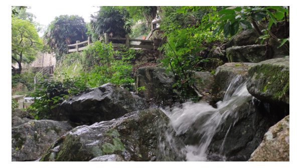 盛夏之時(shí),烈日似火,暑氣蒸人。而游人自步游道進(jìn)入幽澗,則好像到了清涼世界。那樹(shù)蔭下涼風(fēng)習(xí)習(xí),磊磊大石下流水潺潺。枝頭小鳥(niǎo)啼囀,時(shí)又蟬蟲(chóng)歡叫?;蝈銤具叄蜓雠P石上,品味“蟬噪林愈靜”的心境,體驗(yàn)“鳥(niǎo)鳴山更幽”的詩(shī)情,令人暑?lèi)炄ケM,憂煩頓消。如此幽清涼爽的澗谷,實(shí)為百尋難得的避暑勝地、消夏天堂。