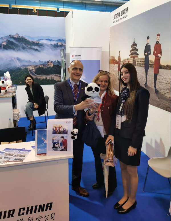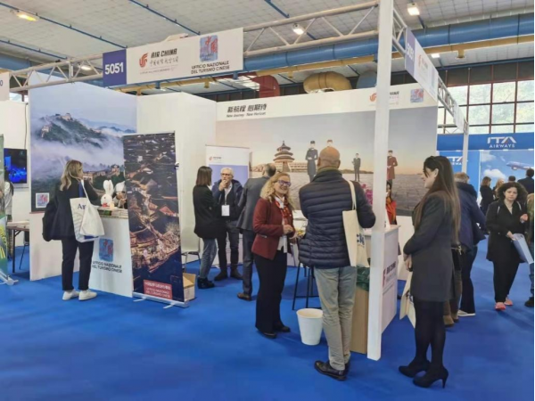 中國(guó)駐羅馬旅游辦事處攜手中國(guó)國(guó)際航空公司參加博覽會(huì),聯(lián)合打造了“文旅+航空”綜合展臺(tái),以航旅一體化推介形式向廣大意大利旅行商和游客發(fā)出“在春暖花開之時(shí),暢游美麗中國(guó)”邀約。