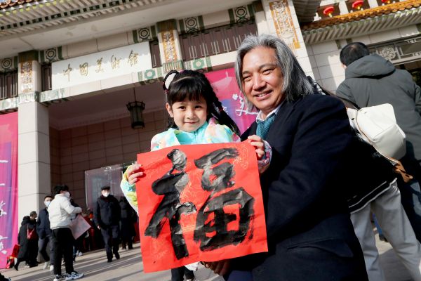 大年初一,中國美術(shù)館迎來大批觀眾。當(dāng)天下午兩點(diǎn),美術(shù)館前廣場熱鬧起來,喜氣洋洋的中國美術(shù)館送福賀新春活動在這里舉辦。