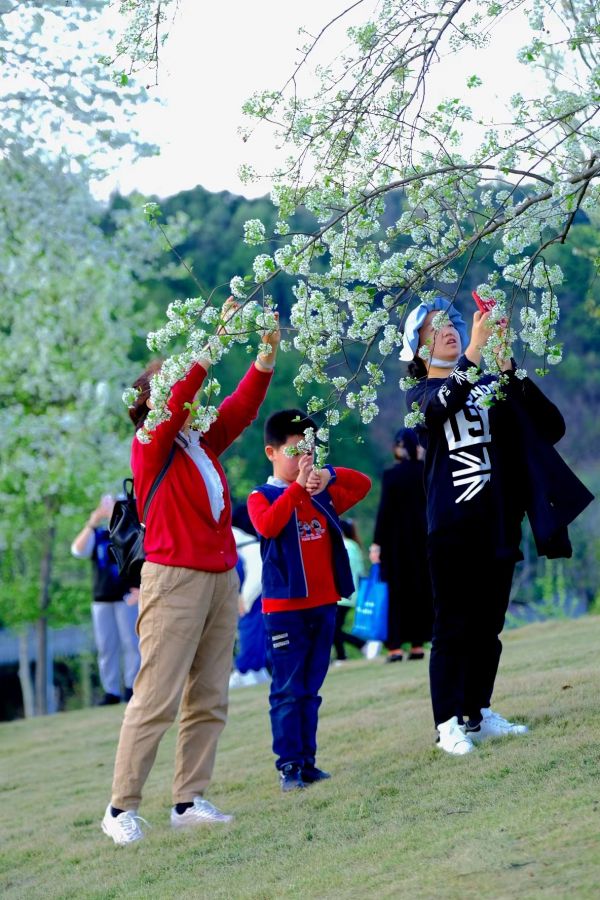 在南寧青秀山景區(qū),潔白的豆梨如云似雪,吸引了不少游客前來踏春?!吧惩叩峡?!我現(xiàn)在在南寧的青秀山??纯次液竺婺且淮笃咨幕?,多美麗!”來自泰國的電商主播卓冰月正拿著手機直播。在她的鏡頭里,豆梨、金魚草、蘭花、郁金香等五彩繽紛。