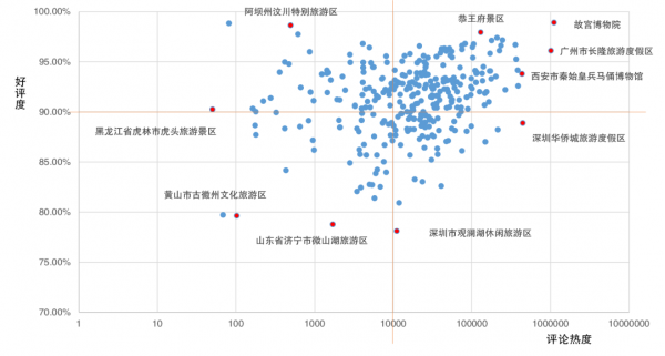 根據(jù)國內(nèi)各家5A級景區(qū)創(chuàng)建以來的游客好評度和網(wǎng)絡(luò)評論熱度數(shù)據(jù),可以在二維坐標(biāo)系中建立起四個象限: