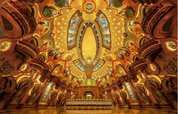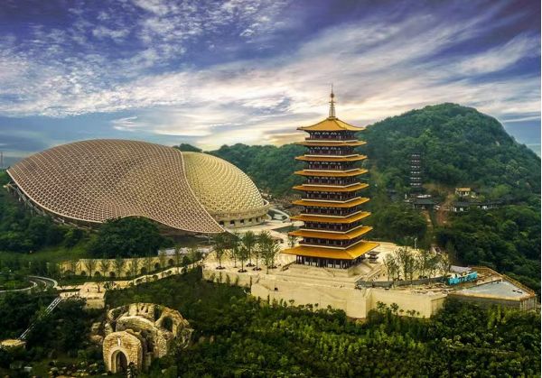 ?佛頂宮;作為佛頂圣境區(qū)的核心之一,佛頂宮坐落于牛首山西峰之處,建基于歷史遺留礦坑之上,總建筑面積約13.6萬平方米,與佛頂塔共同構(gòu)成牛首西峰新景象,與牛首東峰遙相呼應(yīng),再現(xiàn)牛首"雙峰雙闕”并峙的宏盛景。整個(gè)佛頂宮以佛祖頂骨舍利供奉溝主題,外部分為大穹頂和小穹頂兩個(gè)部分,寓意外目錄供養(yǎng)和內(nèi)供養(yǎng)穹頂形如佛祖袈裟覆蓋在小穹頂之上,象征著佛祖的無量加持;小穹頂下部為蓮花寶座造型,上部為摩尼寶珠造型,上下結(jié)合形成"蓮花托珍寶”的神圣意象。