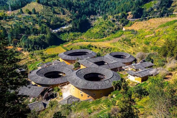 永定客家土樓,位于福建省西南部的龍巖市永定區(qū),中國古建筑的一朵奇葩,永定土樓的設(shè)施布局既有蘇州園林的印跡,也有古希臘建筑的特點,是中西合璧的建筑典范。在永定2200多平方公里的土地上,分布著2萬多座土樓,其中有三層以上的大型建筑近5000座,圓樓360多座,其中清代以前的約占1/3,具有代表性的土樓近3000座。