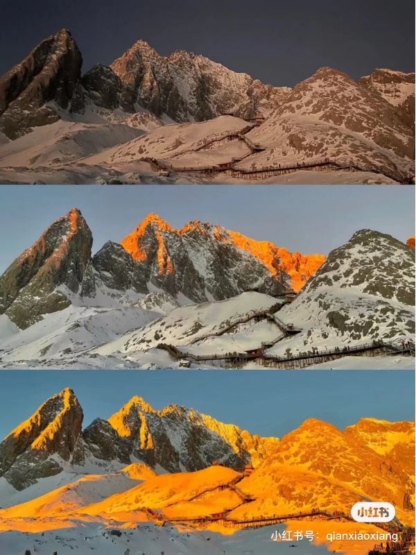 2.當(dāng)2023年的日光再次照射玉龍雪山,當(dāng)你在4680米的高度,與云海一起見證日照金山的奇跡;當(dāng)中國(guó)無限壯闊的天地,讓你在人海里熱淚盈眶;當(dāng)每一次向上的腳步 在心中蕩起回響,彩云之南,數(shù)永遠(yuǎn)是詩和遠(yuǎn)方..來麗江,不去玉龍雪山,是一種遺憾…..玉龍雪山有終年不化的積雪,么皚皚白雪,脈脈山巒;這里的夜晚,云層開闊,星河璀璨;在雪山的懷抱中,迎著朝陽眺望,伴著星河入眠,這是玉龍雪山獨(dú)有的浪漫。