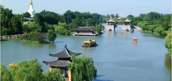 瘦西湖是著名的湖上園林,自然景觀旖旎多姿,建有很多風(fēng)景建筑,是揚州雍容華貴的象征,享有“園林之盛,甲于天下”美譽。瘦西湖以“瘦”為特征,湖面時寬時窄,兩岸林木扶疏,園林建筑古樸多姿。