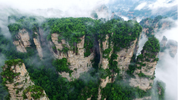 世界罕見的石英砂巖峰林峽谷地貌,由中國第一個國家森林公園——張家界國家森林公園和天子山自然保護區(qū)、索溪峪自然保護區(qū)、楊家界四大景區(qū)組成,風景游覽區(qū)面積264.6平方公里,是中國首批入選的世界自然遺產(chǎn)、世界首批地質(zhì)公園、國家首批5A級旅游景區(qū)?!拔淞曛辍碧扉T山國家森林公園、