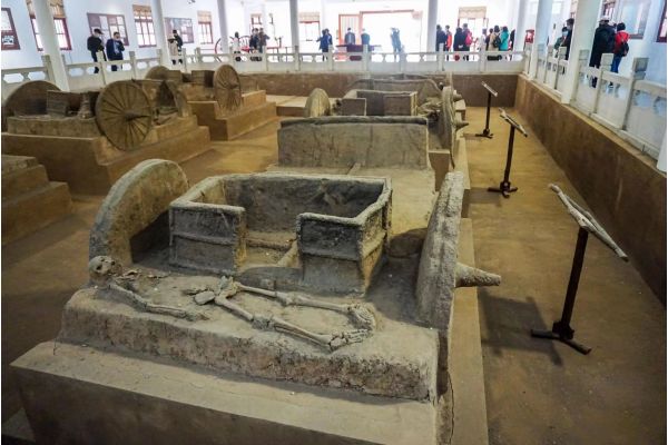 殷墟遺跡主要包括城墻基址、大灰溝、道路、夯土建筑基址、地穴和半地穴居住址、灰坑窖穴、水井、祭祀遺存、手工業(yè)作坊遺址、王陵區(qū)、家族墓地和車馬坑等。殷墟是中國(guó)歷史上第一個(gè)文獻(xiàn)可考、并為考古學(xué)和甲骨文所證實(shí)的都城遺址,因而殷都安陽(yáng)排在中華古都之首。
