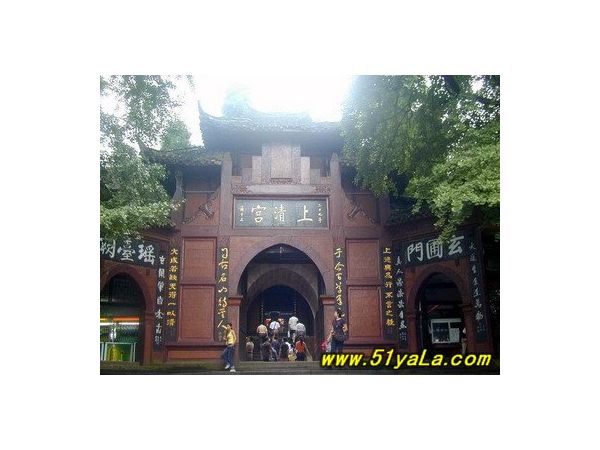 青城主廟——天師洞。相傳東漢末年張道陵曾在此講經(jīng)傳道,其主殿——三皇殿中供有唐朝石刻三皇,殿內(nèi)現(xiàn)存歷代石木碑刻,最著名的有:唐玄宗旨書(shū)碑、岳飛手書(shū)的諸葛亮前后出師表等。出天師洞,過(guò)訪(fǎng)寧橋,便到祖師殿,再向北去,可到朝陽(yáng)洞,出之則直達(dá)高臺(tái)上的上清宮。上清宮,始建于晉代,現(xiàn)存廟宇為清同治年間所建,上有“天下第五名山”、“青城第一峰”等摩山石刻。