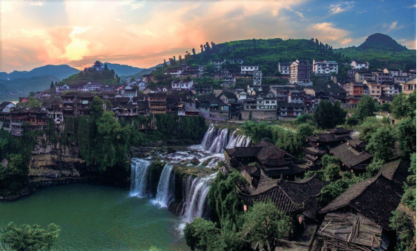 “掛在瀑布上的千年古鎮(zhèn)”由此得名。有詩贊曰:“動地驚天響如雷,憑空飛墜雪千堆,銀河浩瀚從天落,萬斛珍珠處處飛?!?br />