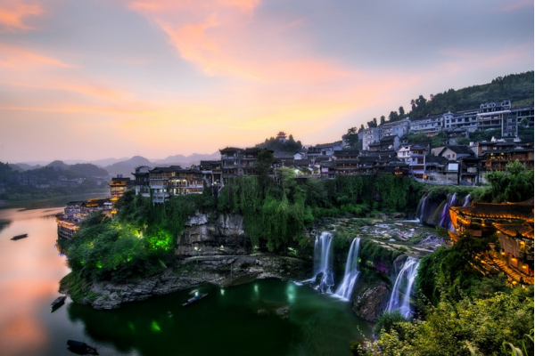 芙蓉鎮(zhèn)是一座具有兩千年歷史的古鎮(zhèn),也是一個山城,原名王村,位于酉水之陽,距縣城48公里。原為西漢酉陽縣治所,因得酉水舟楫之便,上通川黔,下達(dá)洞庭,自古為永順通商口岸,素有“楚蜀通津”之稱。享有酉陽雄鎮(zhèn)、湘西“四大名鎮(zhèn)”、“小南京”之美譽?,F(xiàn)位于湖南省湘西土家族苗族自治州永順縣。