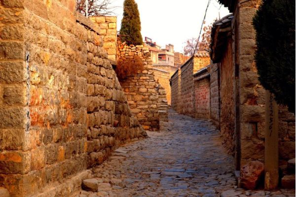 集合出發(fā),乘車赴石家莊井陘(車程約4小時(shí))石頭村,是一部用石頭書寫的村落史詩。于家石頭村位于河北省井陘縣城微水鎮(zhèn)西南約十五公里處,建于明朝成化年間,距今已有五百多年的歷史,這個(gè)石頭村在四面環(huán)山的洼地,山巒環(huán)抱,綠樹掩映,不到村頭見不到人家。當(dāng)走過彎彎曲曲的山路,走進(jìn)這個(gè)村子,一下就置身于石頭的世界:石樓石閣,石房石院,石桌石凳,石磨石碾,石街石巷,石橋石欄,村路也是古老的石頭鋪就的。鋪路的石頭多是青灰色,石質(zhì)堅(jiān)硬,歲月的摩擦使石頭棱角圓潤(rùn)光亮,但這石路光而不滑,干爽潔靜,走在上面,腳下發(fā)出輕輕而有韻律的"噠、噠"的聲響,這聲音讓人心中泛起一股寧靜、幽遠(yuǎn)的情思。站在這石頭街上,環(huán)顧四周,與腳下的石路相連的街、巷、胡同全是青色的石路,路的兩旁全是石頭房院,隨便推開一扇石門,便又會(huì)看到一個(gè)石頭筑造的小天地。