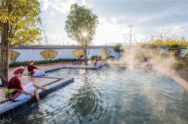 洱源九氣臺溫泉度假酒店的溫泉水,可聞到臭蛋氣味,應(yīng)為珍貴的硫磺泉。李時珍《本草綱目》引用陳藏器語曰“硫磺主治諸瘡,故水亦宜然。諸風(fēng)筋骨攣縮,及肌皮頑痹、手足不遂、無眉發(fā)、疥癬諸疾,在皮膚骨節(jié)者,入浴……”現(xiàn)代醫(yī)學(xué)也證明,硫磺泉的確對種種皮膚病有較好的治療效果,此外對神經(jīng)系統(tǒng)、關(guān)節(jié)都有保健作用,還能改善人體新陳代謝。以此硫磺泉洗、浴、泡,完全是懶漢的有氧運動,并以視覺、嗅覺、聽覺、味覺、觸覺、心覺,六感知來達到一種身、心、靈舒暢的感覺,是一種瘦身、放松、休閑健康新概念。