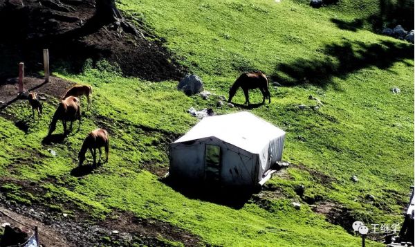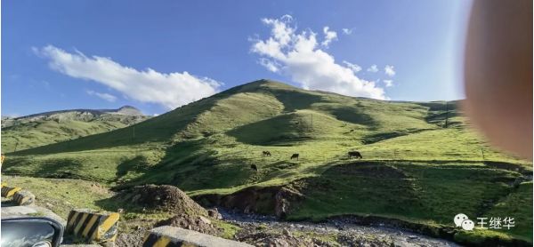 和前天的丹霞地貌的顏色截然相反,昨天給大家情緒是孤獨(dú),荒漠和驚奇。今天滿目蒼翠起伏的山巒和連綿不斷大草原給人的是溫馨,扎實(shí),平靜和生命的萌動(dòng)。厚實(shí)的草甸子上每一棵小草都頂著一顆晶瑩剔透的露珠感染力極強(qiáng)。你的愛意不自覺的從眼神里益處。