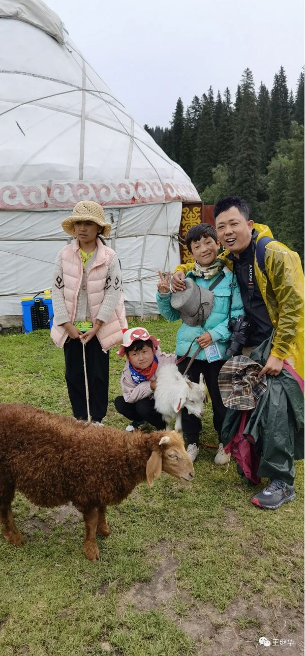 我們幾個(gè)人給他照相,我們領(lǐng)隊(duì)劉寶平和兩個(gè)小孩親密交談,通過交談,知道大的小姑娘一個(gè)叫阿依孜爾,一問小男孩竟然也是姑娘,叫阿依格爾。兩個(gè)小姑娘非??蓯邸0⒁雷螤栂蚯懊嬉恢刚f這是我媽媽。我們順著她指的方向一看。