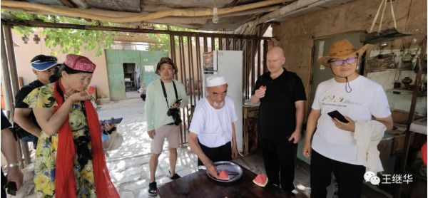 我們繼續(xù)向前走,有一個老頭在向我們招手,說讓我們過去吃西瓜,看來,這里每個店的西瓜都是免費吃,希望以此帶來生意。