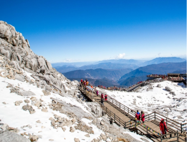 玉龍雪山其實就是十幾座山峰連綿在一起,因海拔位置較高,所以終年積雪不化,成為了當(dāng)?shù)厝藗冃闹械纳裆?。玉龍雪山非常的廣闊,遠遠望去宛如一條盤旋的巨龍一般,十分的靜美。這里也是我國知名的景區(qū)之一,來到玉龍雪山旅行的賓客們最好是身著冬季的登山服,這樣的話才能不會被寒冷的氣候所傷害,更好地欣賞當(dāng)?shù)氐拿篮镁吧?
