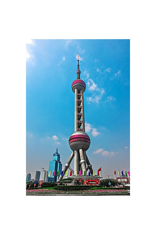 東方明珠廣播電視塔,簡稱“東方明珠”,位于上海市浦東新區(qū)陸家嘴世紀(jì)大道1號(hào),地處黃浦江畔,背擁陸家嘴地區(qū)現(xiàn)代化建筑樓群,與隔江的外灘萬國建筑博覽群交相輝映,1991年7月30日動(dòng)工建造,1994年10月1日建成投入使用,是集都市觀光、時(shí)尚餐飲、購物娛樂、歷史陳列、浦江游覽、會(huì)展演出、廣播電視發(fā)射等多功能于一體的上海市標(biāo)志性建筑之一。截至2019年,為亞洲第六高塔、世界第九高塔。東方明珠廣播電視塔主體為多筒結(jié)構(gòu),由3根斜撐、3根立柱及廣場、塔座、下球體、5個(gè)小球體、上球體、太空艙、發(fā)射天線桅桿等構(gòu)成,總高468米,總建筑面積達(dá)10萬平方米。