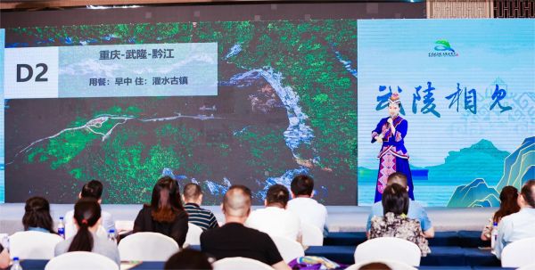 活動現(xiàn)場,土家幺妹廖珊以“峽谷福緣·武陵相見”為主題,全方位推介了黔江豐富的自然資源和民俗文化,以及“山水韻”“峽谷城”“武陵風(fēng)”等特色文旅產(chǎn)品和精品旅游線路,帶領(lǐng)與會嘉賓“云游”黔江。