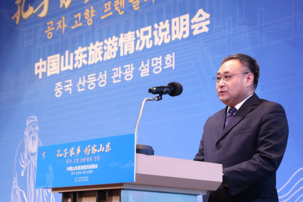 山東省文化和旅游廳二級巡視員王春生在致辭中表示,山東地處中國東部沿海,是人口大省、經(jīng)濟(jì)大省、文化大省、旅游大省?!昂每蜕綎| 好品山東”的品牌享譽(yù)海內(nèi)外。山東區(qū)位優(yōu)勢明顯,交通便捷;旅游設(shè)施完善,服務(wù)優(yōu)越;獎勵力度加大,政策優(yōu)厚。誠摯邀請韓國的新老朋友,到山東踏古尋蹤,感受歷史人文;探奇攬勝,欣賞山水畫卷;樂享人生,體驗(yàn)精彩度假;大快朵頤,品味美食美酒,來一場文化之旅、觀光之旅、休閑之旅、美食之旅。