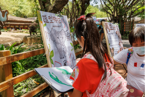 親子家庭不僅可以在活動期間享受園區(qū)自然風(fēng)光,還可以進(jìn)行寫生,廣州長隆野生動物世界在長頸鹿廣場、考拉園、亞洲象展區(qū)、熊貓村廣場和火烈鳥展區(qū)設(shè)立固定打卡點(diǎn);珠海長隆海洋王國創(chuàng)新打造“自然共繪計(jì)劃”藝術(shù)裝置,大型彩鉛、顏料桶等氛圍布置吸睛無數(shù),藝術(shù)裝置中間貼有孩子們的寫生作品,趣味性十足。