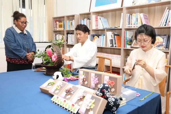 此外,南京剪紙非遺傳承人張鈞還用精湛的技藝現(xiàn)場剪出了斐濟的國花——扶?;ǎA得現(xiàn)場觀眾陣陣掌聲。