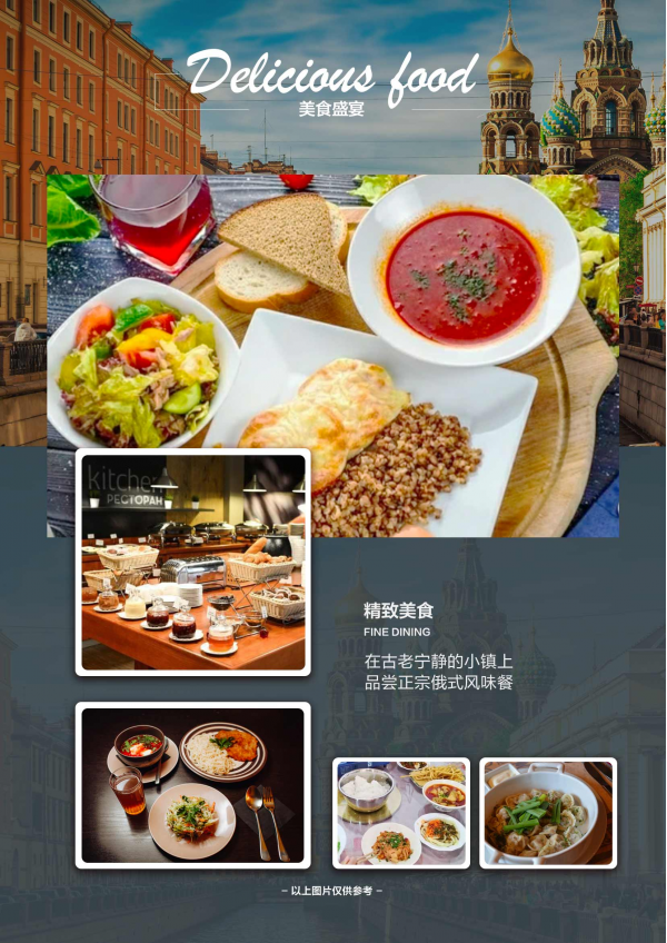 午、晚餐:中式正餐(八菜一湯)及俄式風(fēng)味餐 ;