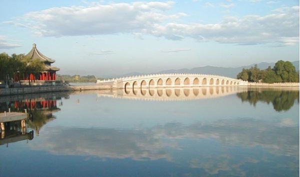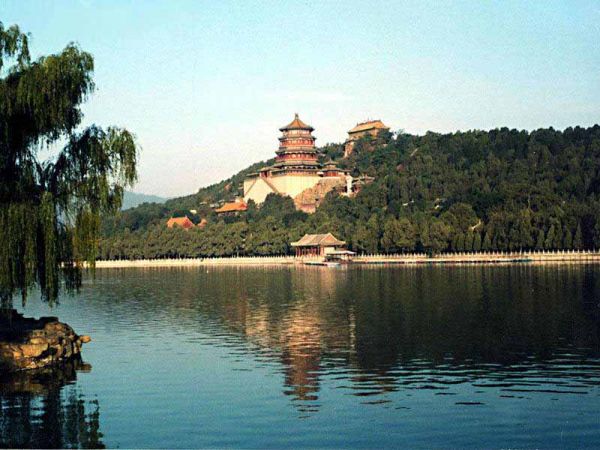 元朝,萬(wàn)壽山稱為甕山,昆明湖叫甕山泊。明朝,曾在甕山上建了一座圓靜寺。清朝,稱清猗園。甕山泊后改名為西湖。清朝乾隆皇帝為了慶賀其母親鈕祜祿氏六十歲生日,在甕山修大報(bào)恩延壽寺,將甕山改為萬(wàn)壽山,并仿照漢武帝在長(zhǎng)安昆明池練水師的故事,把西湖改名昆明湖,全園改稱清漪園。清漪園最后建于一七六四年,共用了十五年的時(shí)間,耗銀四百八十多萬(wàn)兩。一八六)年,英法聯(lián)軍侵入北京,園中珍貴的文物被搶劫一空,宏麗的建筑亦多被焚毀。