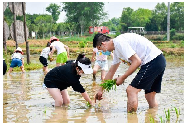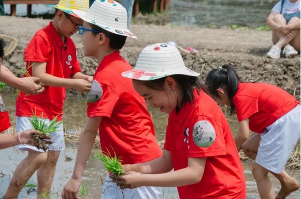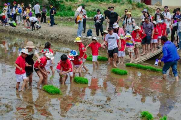 此時的長安唐村,不少家長帶著孩子,挽起褲腿踩進泥土中,在園區(qū)工作人員的帶領下,親手栽種下一棵棵秧苗,參與作物的自然成長?!?strong>很多游客都很珍惜插苗體驗的親子時光,對他們來說這種與自然親密接觸的機會很珍貴。”園區(qū)一名工作人員說。