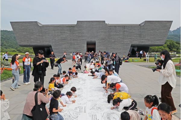 活動(dòng)當(dāng)日,大禹陵景區(qū)還舉辦了“南鎮(zhèn)一刻”文化體驗(yàn)課堂活動(dòng)?;顒?dòng)以知識(shí)宣講、文化展示、互動(dòng)體驗(yàn)的方式,向市民游客宣傳亞運(yùn)知識(shí)、大禹文化和紹興歷史?!?strong>知味亞洲 聚焦禹陵”南鎮(zhèn)亞運(yùn)風(fēng)情美食市集和大禹博物館燈光秀等活動(dòng)同期舉辦,吸引眾多市民游客品亞洲特色美食,購亞洲風(fēng)情好物,賞夜幕下的大禹博物館美景。