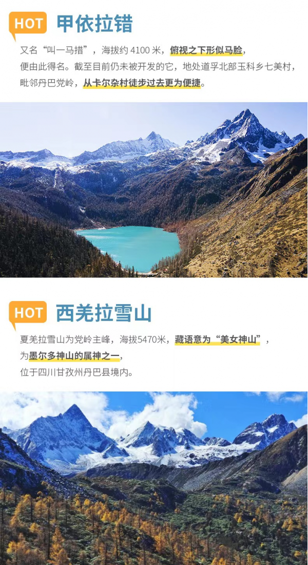 秋季(9、10月):無(wú)論是從氣候、景色來(lái)說(shuō),秋季都是最適合前往高原旅游的,五彩斑斕紅葉,野花、青稞、雪山和諧地搭配在一起,構(gòu)成了最獨(dú)特的美麗。但高原的秋季非常短暫,這是最令人遺憾的。