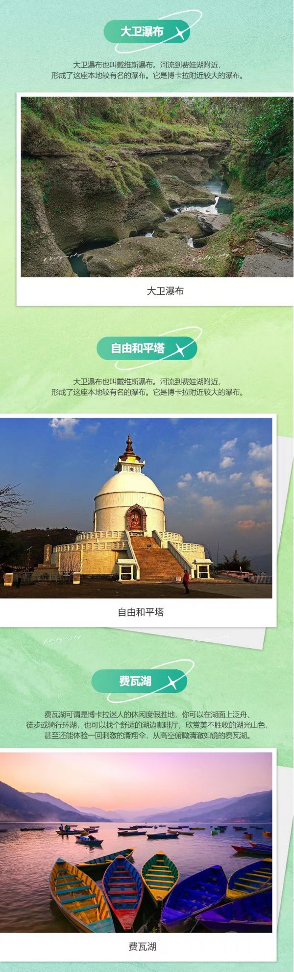 3.門票: 含大衛(wèi)瀑布、費(fèi)瓦湖泛舟、加德滿都杜巴廣場(chǎng)、巴德崗杜巴廣場(chǎng)、奇特旺森林公園套票、猴廟、大佛塔景點(diǎn)門票
