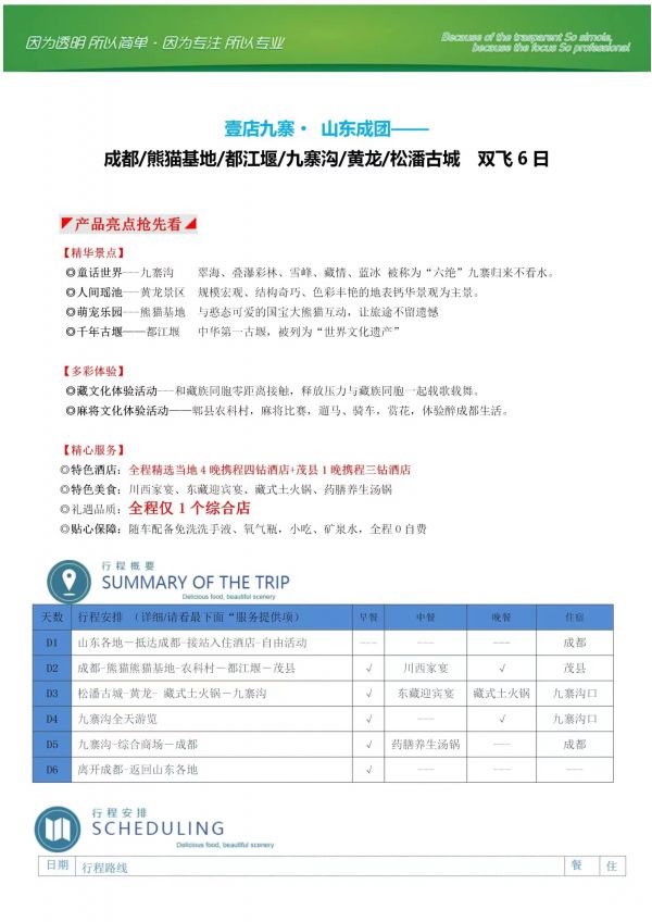 九寨雙飛6日游 聊城發(fā)團(tuán) 純玩 無購物 成都 熊貓基地 都江堰 九寨溝 黃龍 松浦古城 ...... 價(jià)格 3190 3490 報(bào)名電話 0635 8681234