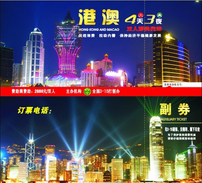 歲末年關正是商家的打折促銷季,某家電品牌推出了買家電贈送價值3980元的港澳4天3夜雙人游貴賓券活動。此券由名為“中國深圳國際旅游集團”主辦,持券人僅需交納港、澳導游、司機小費及港澳口岸服務費、離境稅等220元,而在港澳期間的交通、住宿、餐飲、景點門票及保險費用全費。張先生夫婦覺得很劃算,拿到旅游券后就報了名,按照要求時間在深圳集合。同團有近30名游客,手中的券有買保險贈的,有買手機贈的,有做美容贈的,都不是在旅行社花錢參的團。張先生覺得有些不對勁,這時老伴指著旅游券說:“你看,上面都寫了本次活動絕無強制性消費、欺騙游客行為,肯定沒事!”結果,接下來的幾天行程簡直是噩夢一般的遭遇:導游天天帶大家到珠寶店、手表店購物;商品質次價高,同團游客不愿購買,東躲西藏地躲導游,導游就威脅辱罵;張先生夫婦已經(jīng)買了5000元的商品,導游還不滿意,聲稱不買到他滿意的金額就用集裝箱將游客拉到澳門去。行程結束后,張先生向旅游部門投訴。經(jīng)核實,所謂“中國深圳國際旅游集團”純系子虛烏有。