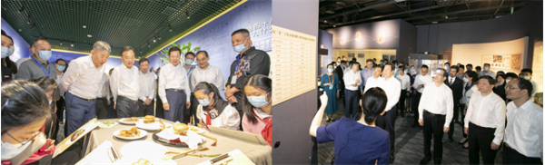 第二黨支部全員出動(dòng),輾轉(zhuǎn)各地開(kāi)展文物商借、運(yùn)輸?shù)裙ぷ?,短短二十天時(shí)間,順利向國(guó)內(nèi)外50余家博物館借用文物344件/套。第三黨支部勇挑安全保衛(wèi)重?fù)?dān),全面檢查安防視頻監(jiān)控、報(bào)警設(shè)備以及消防設(shè)施設(shè)備,確保設(shè)備安全可靠。制定院區(qū)交通方案,協(xié)調(diào)轄區(qū)交警指揮附近交通,全員24小時(shí)在崗,開(kāi)展不定時(shí)巡邏,及時(shí)排查安全隱患,確?;顒?dòng)安全有序。第四黨支部、第五黨支部致力于打造精品內(nèi)容、做優(yōu)后勤服務(wù)、強(qiáng)化宣傳推廣,為四個(gè)展覽共舉行線上線下大綱論證會(huì)12次,展綱修改34次,開(kāi)展社教項(xiàng)目研討會(huì)議40余場(chǎng),組織講解員、志愿者培訓(xùn)10余場(chǎng),完成主館展廳穹頂漏水修繕、展廳墻壁刷白提新、院區(qū)整體綠化改造提升、5G信號(hào)升級(jí)調(diào)試、開(kāi)展院區(qū)沉浸式光影秀展演活動(dòng)等工作,不遺余力地為保障主會(huì)場(chǎng)活動(dòng)圓滿舉辦貢獻(xiàn)力量。