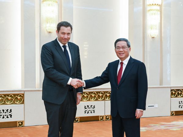 6月5日下午,中共中央政治局常委、國(guó)務(wù)院總理李強(qiáng)在人民大會(huì)堂會(huì)見(jiàn)由德國(guó)社會(huì)民主黨聯(lián)合主席克林貝爾率領(lǐng)的代表團(tuán)。