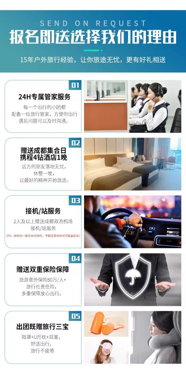 戶外裝備說明:只有每周六的團期才可以配備裝備,常規(guī)價格不包含戶外裝備,只有升級價格才包含,還望諒解。