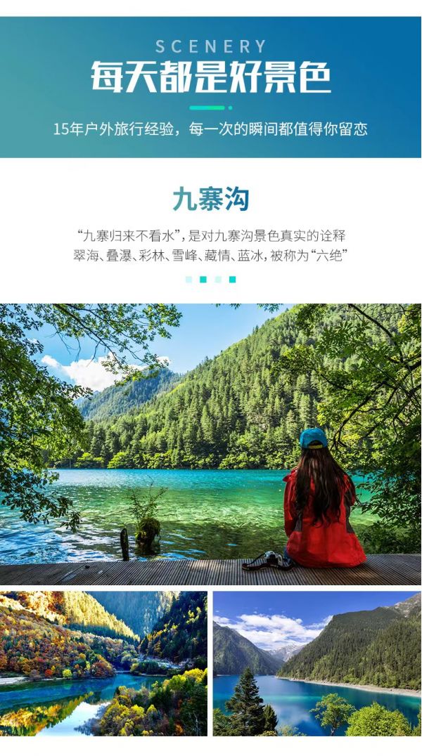 4、九寨溝景區(qū)實行分區(qū)域開放,開放區(qū)域為溝口經(jīng)諾日朗瀑布至長海,扎如溝的扎如寺及日則溝的鏡海;其中,長海、五彩池、鏡海、諾日朗瀑布、樹正群海、雙龍海瀑布、扎如寺等景觀原則上為步行游覽區(qū),具體游覽方式請聽從隨車講解員安排。