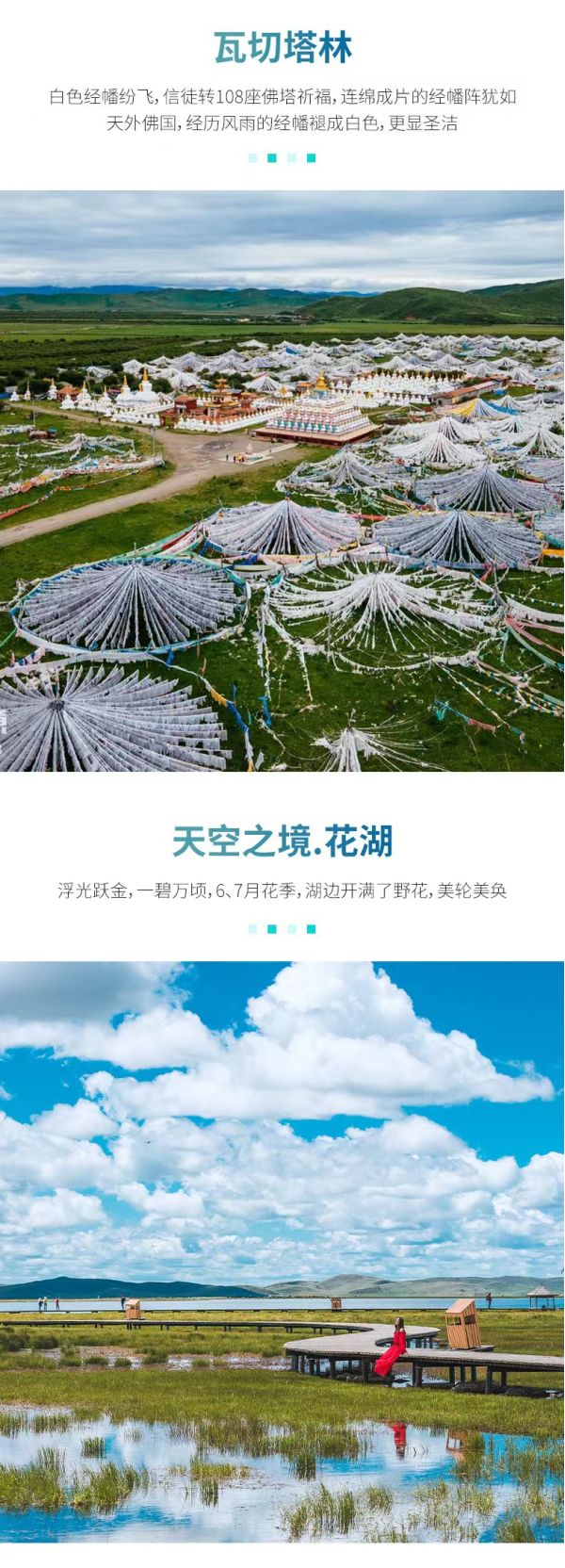 隨后經(jīng)過瓦切塔林,瓦切塔林是為了紀念第十世班禪大師頌經(jīng)祈福之地,成排的白塔、連綿的經(jīng)幡,蔚為壯觀,以此為背景用相機記錄下自己虔誠朝拜的樣子吧。