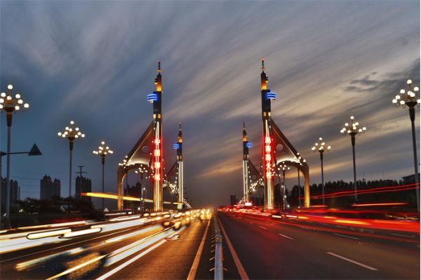 興華路徒駭河大橋全長近384米,大橋采用雙向6車道設(shè)計,很是雄偉壯觀。