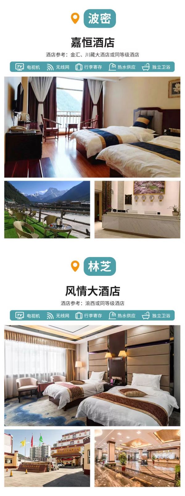 l 林芝:風(fēng)情大酒店、渝西或其他同級(jí)酒店
