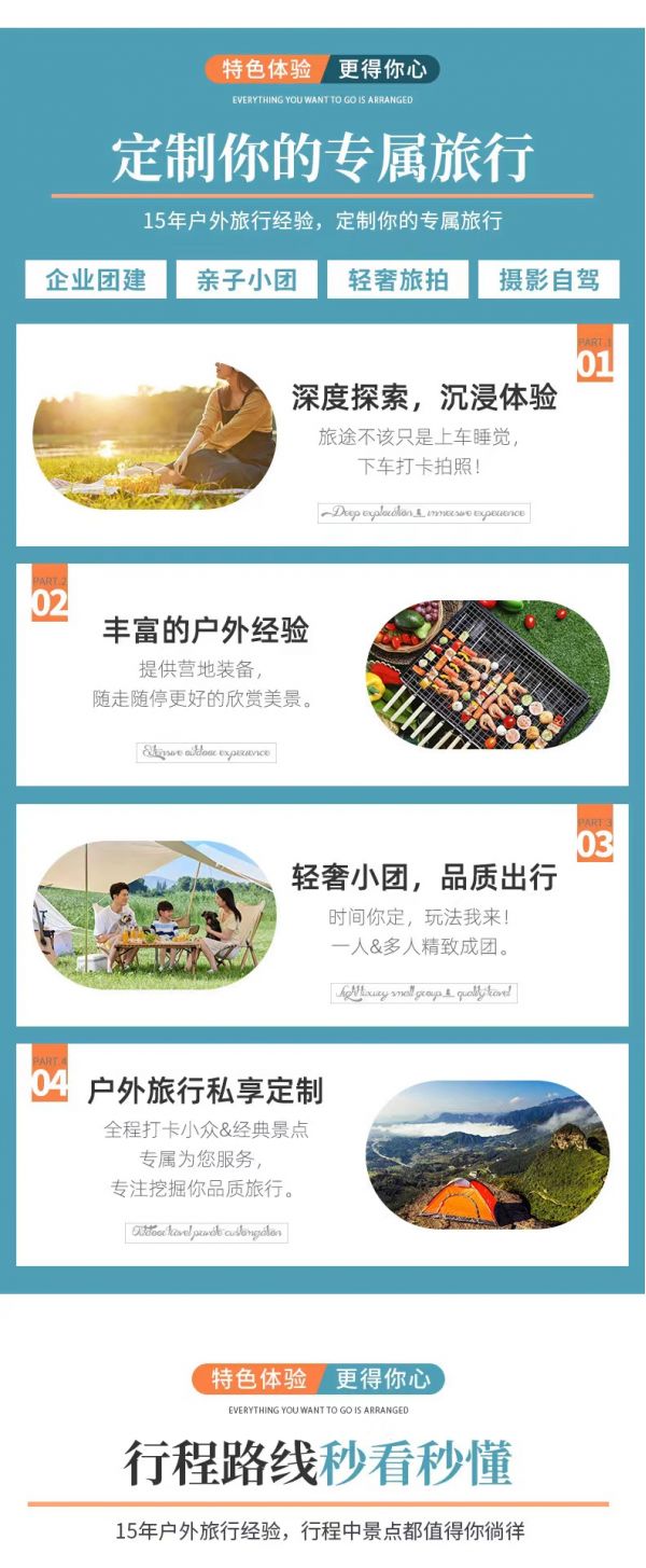 私人訂制:我們業(yè)務(wù)范圍囊括了全國(guó)各大城市,川西、西北、新疆、西藏,在路上永遠(yuǎn)有我們的身影。我們將為每一個(gè)有定制需求的你策劃出獨(dú)屬于自己的完美旅行。