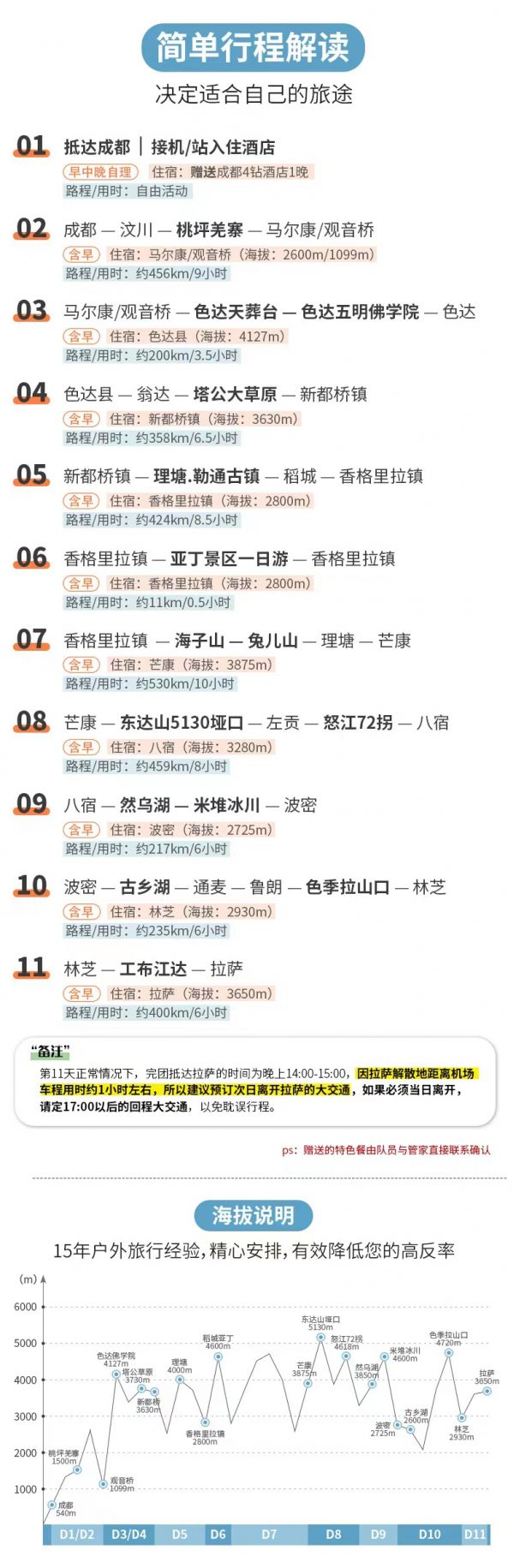 海拔情況:3280m—3850m—4600m—2725m