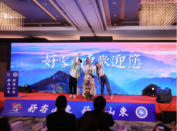 這是本次“好客山東 好品山東”文化和旅游推介會(huì)精彩鏡頭之一。此次推介會(huì)由山東省文化和旅游廳、亞洲旅游交流中心聯(lián)合主辦,為更好地宣傳推介山東優(yōu)質(zhì)文旅資源,山東省文化和旅游廳精心編排了文旅情景劇《帶你回家》。