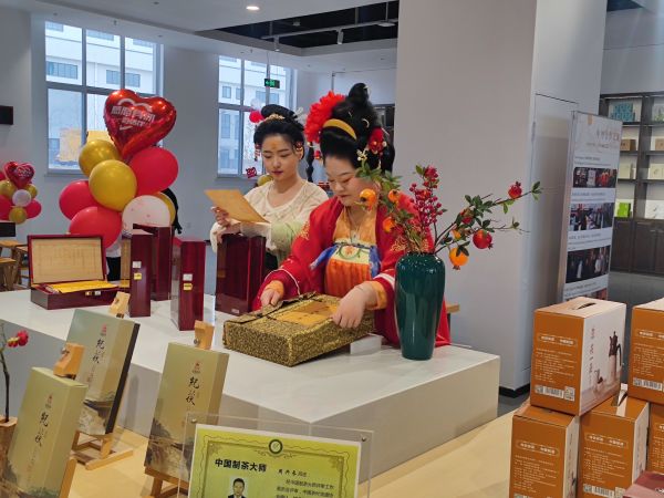 “茶磚內(nèi)自然生長出金黃色的微小顆粒,俗稱‘金花’,是一種對人體有益的菌,對于調(diào)節(jié)血脂、血糖、尿酸具有特殊功能?!弊叱鰶芪架虿璨┪镳^的秦先生儼然成為茶葉專家,他不僅在博物館里了解到茯茶的前世今生,而且在商品選購區(qū)購買了一款名為“金馬玉堂”的茯茶生肖產(chǎn)品,準(zhǔn)備送給自己的父親。
